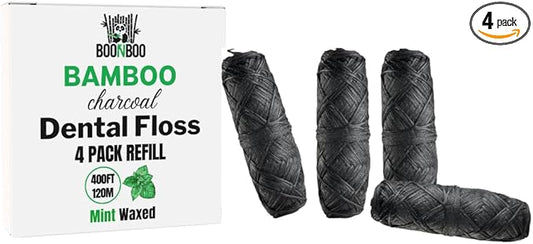 BOONBOO Dental Floss Refill Rolls, Charcoal Woven Thread, 4 Pack, Mint Flavor…