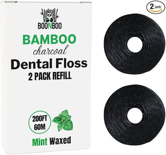 BOONBOO Dental Floss Refill Rolls, Charcoal Woven Thread, 2 Pack, Mint