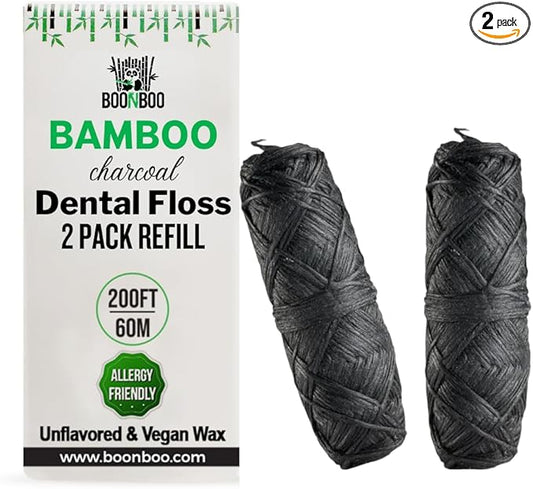 BOONBOO Dental Floss Refill, Charcoal Woven Thread, 2pcs of 100FT/30M - Total 200FT/60M, Waxed, Coconut
