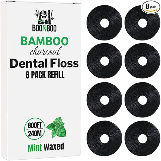 BOONBOO Dental Floss Refill, Bamboo Charcoal Woven Thread, 8 Pieces, Unflavored