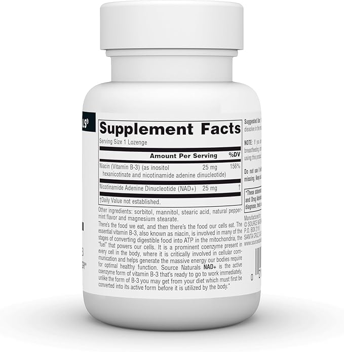 Source Naturals NAD+, Coenzymated B-3, Supports Cellular Energy*, 25 mg - 60 Lozenges
