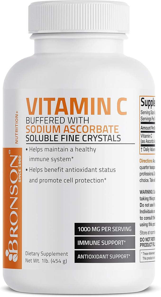 Buffered Vitamin C Powder Ascorbic Acid Buffered with Sodium Ascorbate Soluble Fine Crystals – Promotes Healthy Immune System and Cell Protection – Powerful Antioxidant - 1 Pound (16 Ounces)