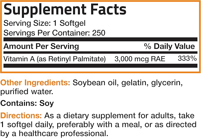 Bronson Vitamin A 10,000 IU Premium Non-GMO Formula Supports Healthy Vision & Immune System and Healthy Growth & Reproduction, 250 Softgels
