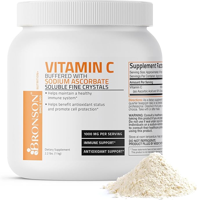 Buffered Vitamin C Powder Ascorbic Acid Buffered with Sodium Ascorbate Soluble Fine Crystals – Promotes Healthy Immune System and Cell Protection – Powerful Antioxidant - 1 Kilogram (2.2 Lbs)