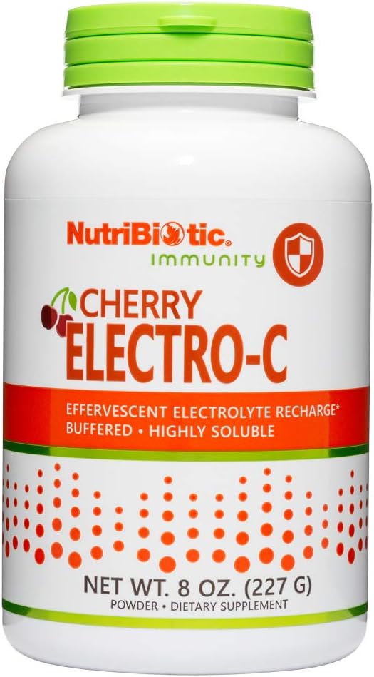 NutriBiotic - Cherry Electro-C Vitamin C & Electrolyte Powder, 8 Oz | 850 Mg Vitamin C Per Serving | Effervescent Electrolyte Recharge | Buffered & Highly Soluble | Non-GMO & Gluten Free
