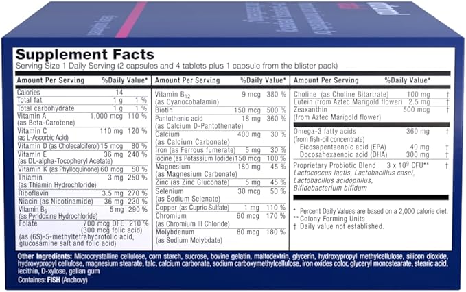 - 30 day supply. Everything you need in a convenient daily pack. Take the contents of 1 Daily Pack with or after a meal once every day.