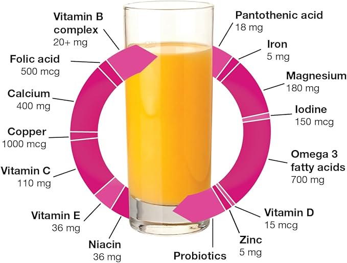 - Also contains a complex of folic acid to support the mother's health and baby's cognitive development