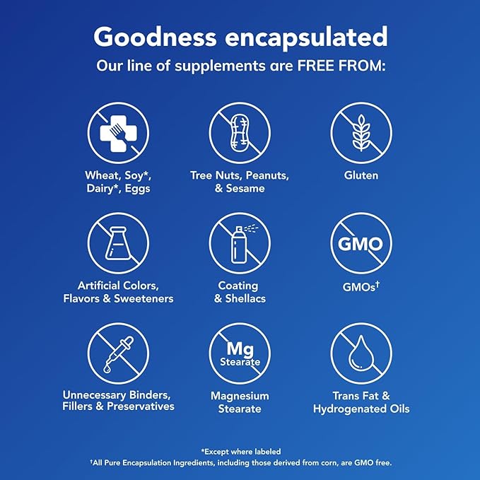 - Pure Difference: What we leave out matters, too; Pure Encapsulations products are FREE FROM common allergens, artificial or unnecessary ingredients, and GMOs