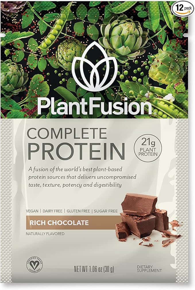 PlantFusion Complete Vegan Protein Powder - Plant Based Protein Powder with BCAAs, Digestive Enzymes and Pea Protein - Keto, Gluten Free, Soy Free, Non-Dairy, No Sugar, Non-GMO - Chocolate Pack of 12