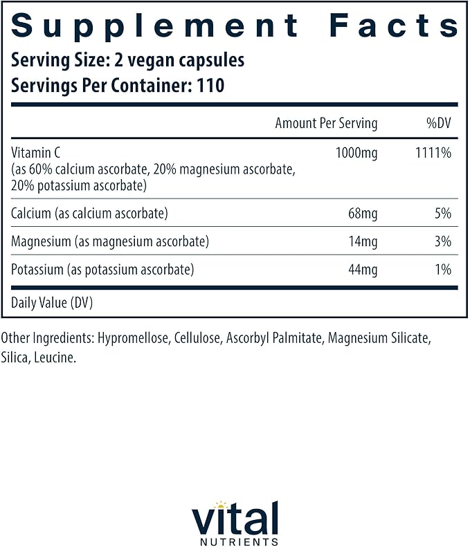 Vital Nutrients Buffered Vitamin C 500mg | Vegan Gentle Vitamin C for Sensitive Individuals* | Immune Support Supplement* | Gluten, Dairy and Soy Free | Non-GMO | 220 Capsules