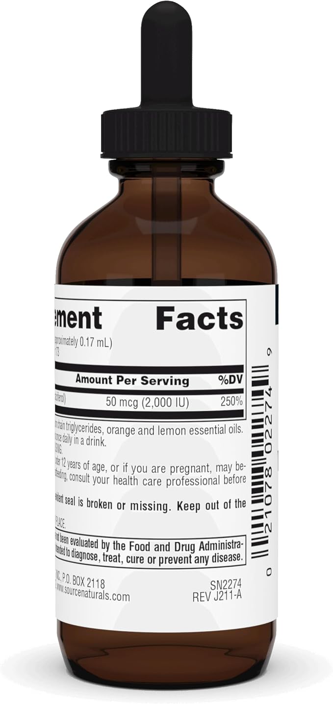 Source Naturals Vitamin D-3 Liquid Drops 2000 iu Supports Bone & Immune Health* - 1 Fluid oz