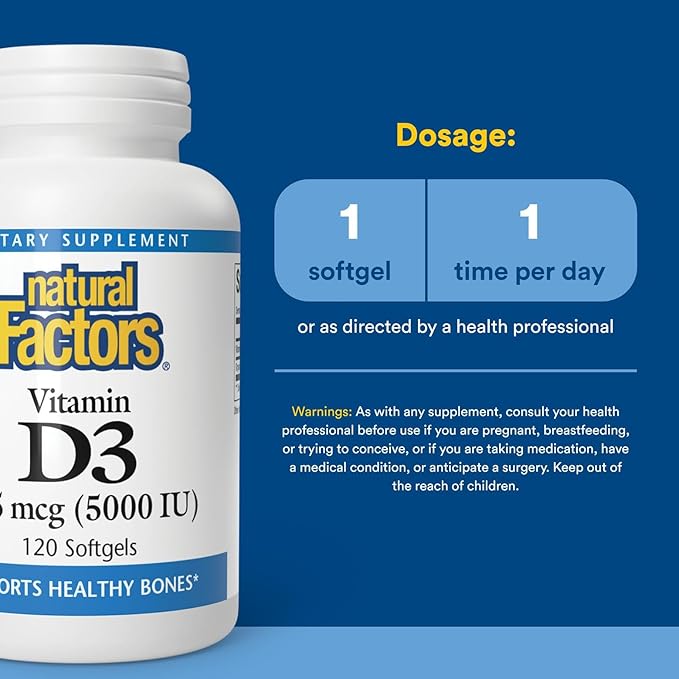 Natural Factors - Vitamin D3 5000 IU, Supports Healthy Bones, 120 Soft Gels