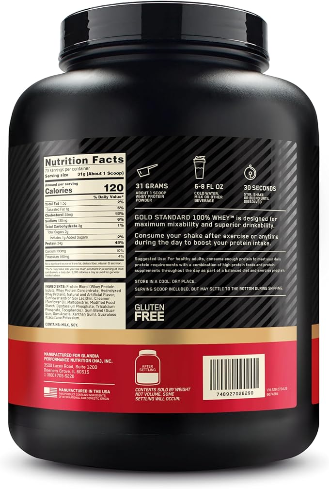 - GOLD STANDARD 100% WHEY BLEND – 24g blended protein consisting of whey protein isolate, whey protein concentrate, and whey peptides to support lean muscle mass – they don't call it the GOLD STANDARD of quality for nothing