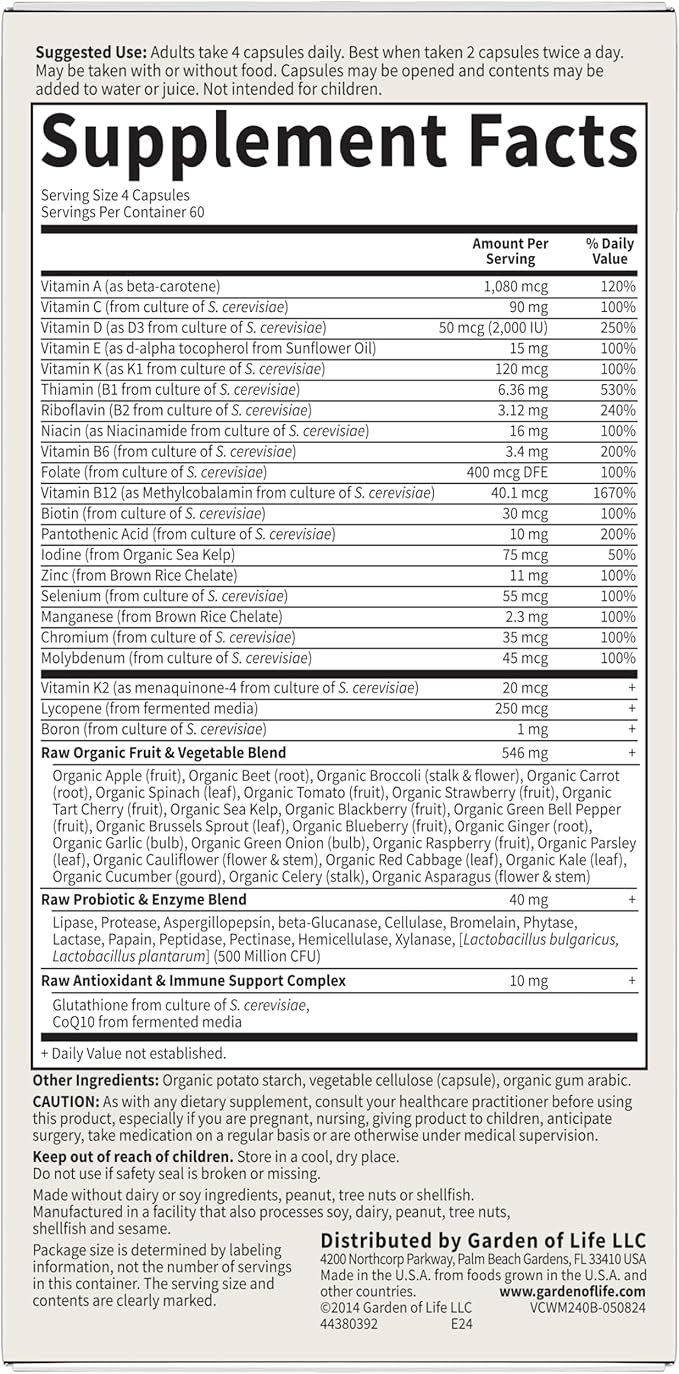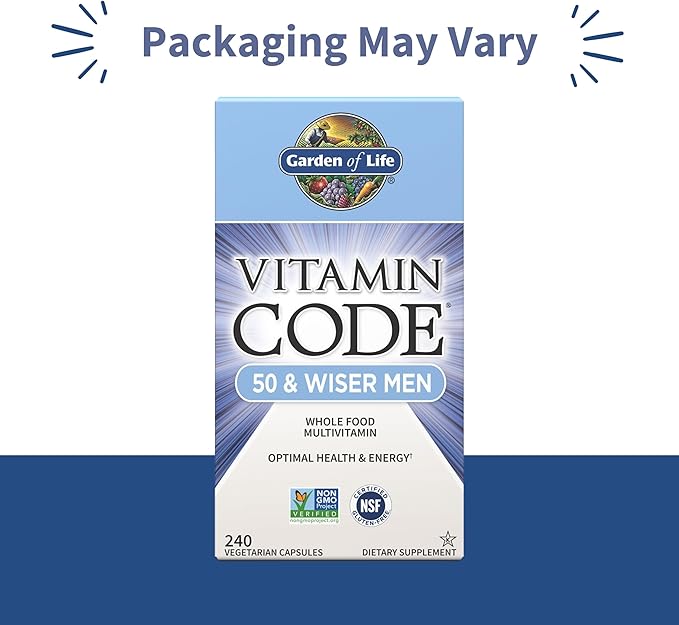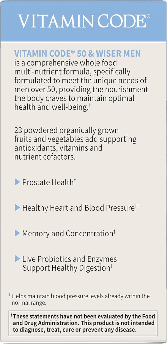 Garden of Life Multivitamin for Men - Vitamin Code 50 & Wiser Men's Raw Whole Food Vitamin Supplement with Probiotics, Vegetarian, 240 Capsules