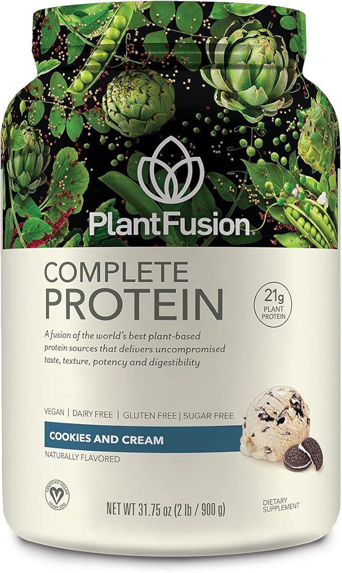 PlantFusion Complete Vegan Protein Powder - Plant Based Protein Powder with BCAAs, Digestive Enzymes and Pea Protein - Keto, Gluten Free, Soy Free, Non-Dairy, No Sugar, Non-GMO - Cookies & Cream 2 lb