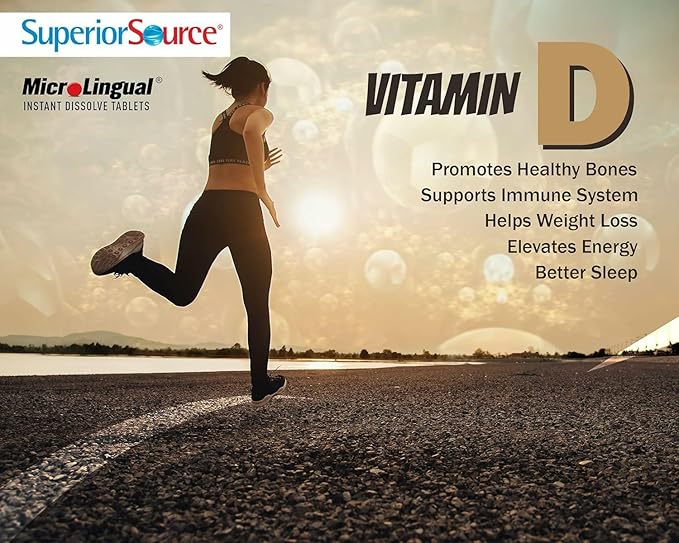 Superior Source Vitamin D3 10000 IU, Quick Dissolve MicroLingual Tablets, 100 Count, Helps Promote Strong Bones and Teeth, Immune Support, Helps Maintain Healthy Muscle Function, Non-GMO