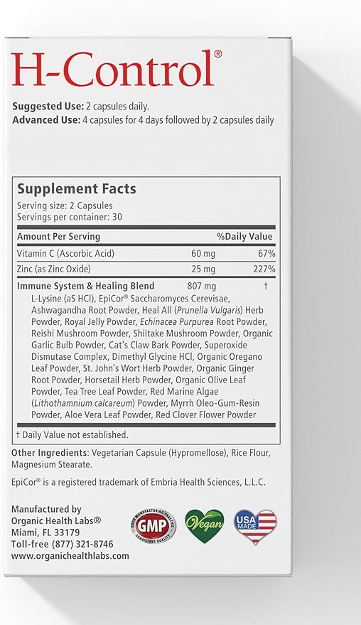Organic Health Labs H-Control, Vitamin C with Zinc for Maximum Immune Support, 60 Veggie Capsules