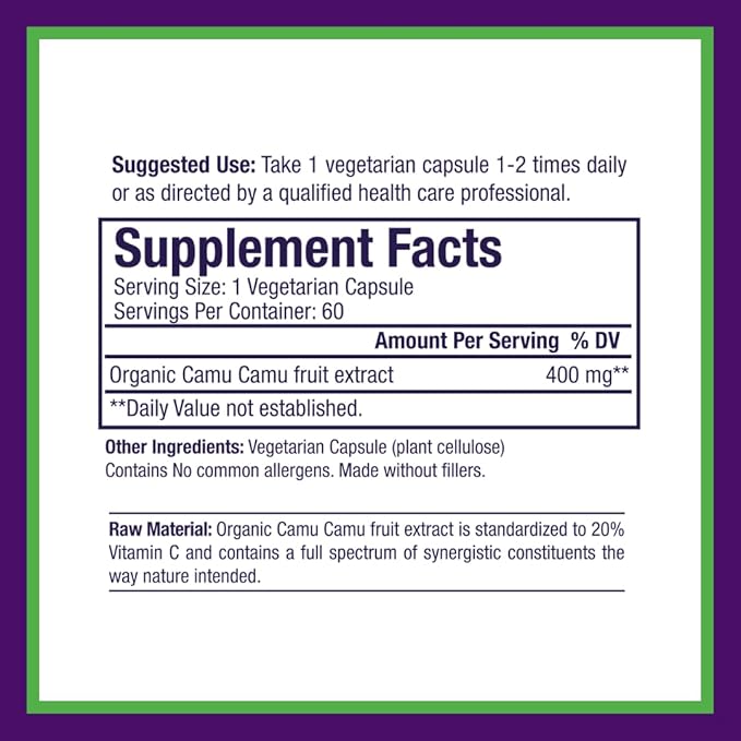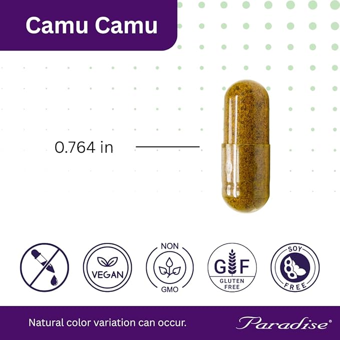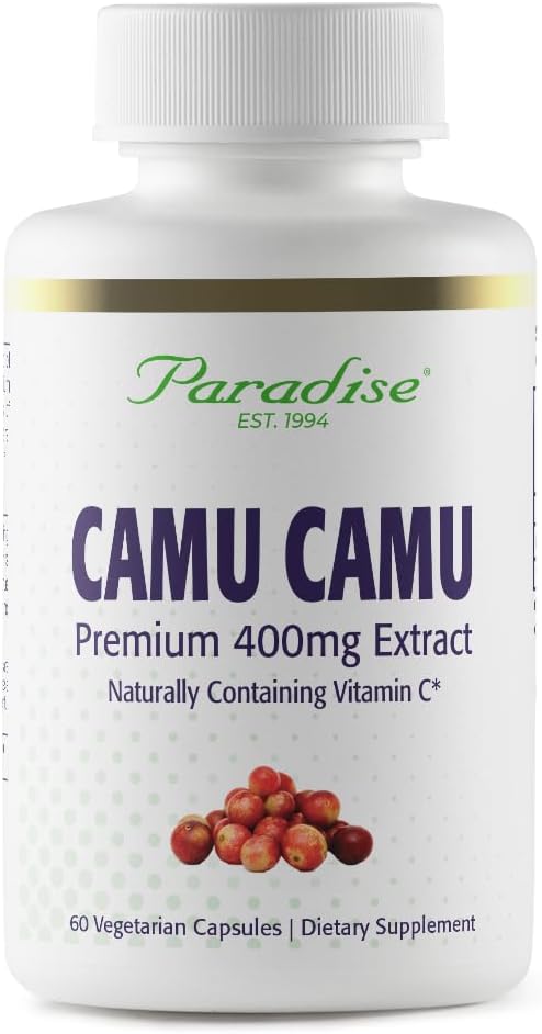 Paradise Herbs, Organic Camu Camu Extract, 400 mg, Rich in Vitamin C, Pure & Potent, Gluten Free, Non-GMO, Vegan, 60 Capsules