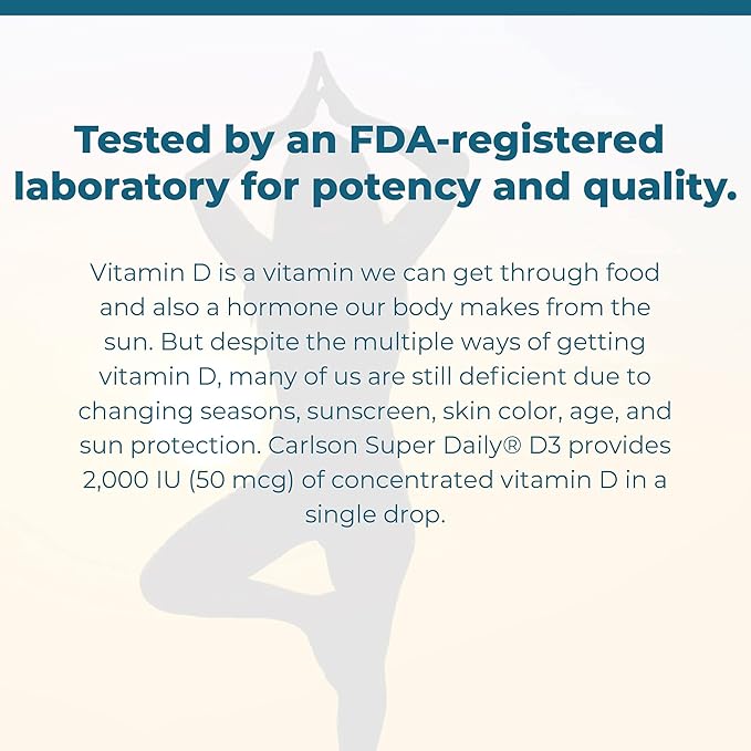 Carlson - Super Daily D3, Vitamin D Drops, 2,000 IU per Drop, 1-Year Supply, Vitamin D3 Liquid, Heart & Immune Health, Vegetarian, Liquid Vitamin D Drops, Unflavored, 365 Drops