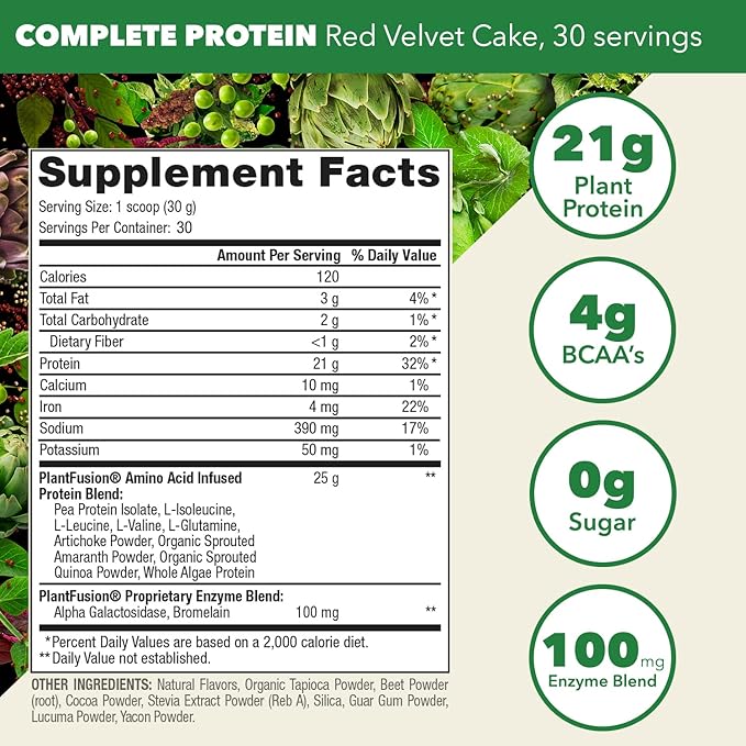 PlantFusion Complete Vegan Protein Powder - Plant Based Protein Powder With BCAAs, Digestive Enzymes and Pea Protein - Keto, Gluten Free, Soy Free, Non-Dairy, No Sugar, Non-GMO - Red Velvet 2 lb
