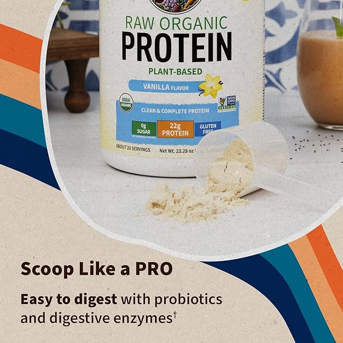 Garden of Life Protein Powder, Vegan Protein Powder, BCAA, Probiotics & Digestive Enzymes, Gluten & Lactose Free, Vanilla, 1.5 LB