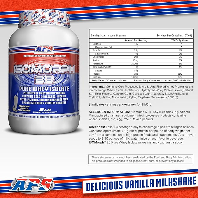 APS Nutrition IsoMorph 28 Protein Powder | Pure Whey Isolate | Cold Pressed, Ultra- Filtered, & Ion Exchange Isolates | 28g Protein | 2 Pound (Vanilla Milkshake)
