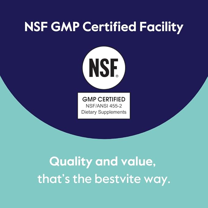 - BESTVITE QUALITY: All Bestvite products are manufactured in the USA in accordance with GMP standards and undergo third-party testing before release.