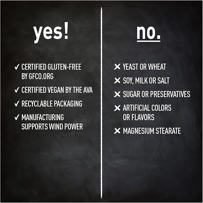 - Pure Ingredients, No Additives Free from yeast, wheat, soy, milk, salt, sugar, preservatives, artificial colors, flavors, or magnesium stearate—just what you need, nothing you don’t.