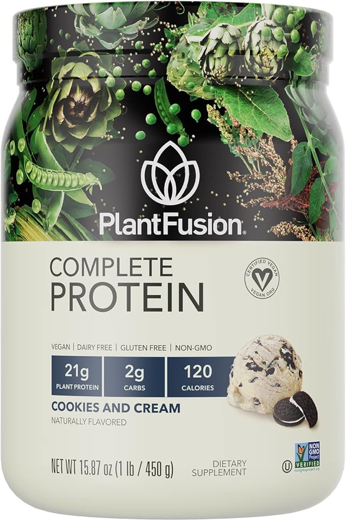 PlantFusion Complete Vegan Protein Powder - Plant Based Protein Powder With BCAAs, Digestive Enzymes and Pea Protein - Keto, Gluten Free, Soy Free, Non-Dairy, No Sugar, Non-GMO - Cookies & Cream 1 lb