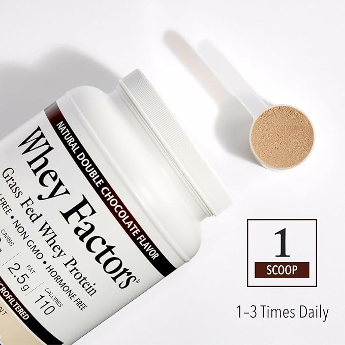 Natural Factors Whey Factors, Grass Fed Whey Protein Concentrate, Aids Muscle Development and Immune Health, Double Chocolate, 2 lb