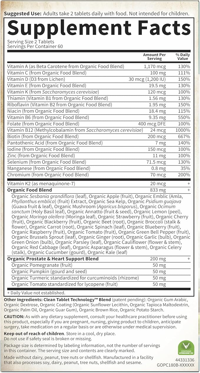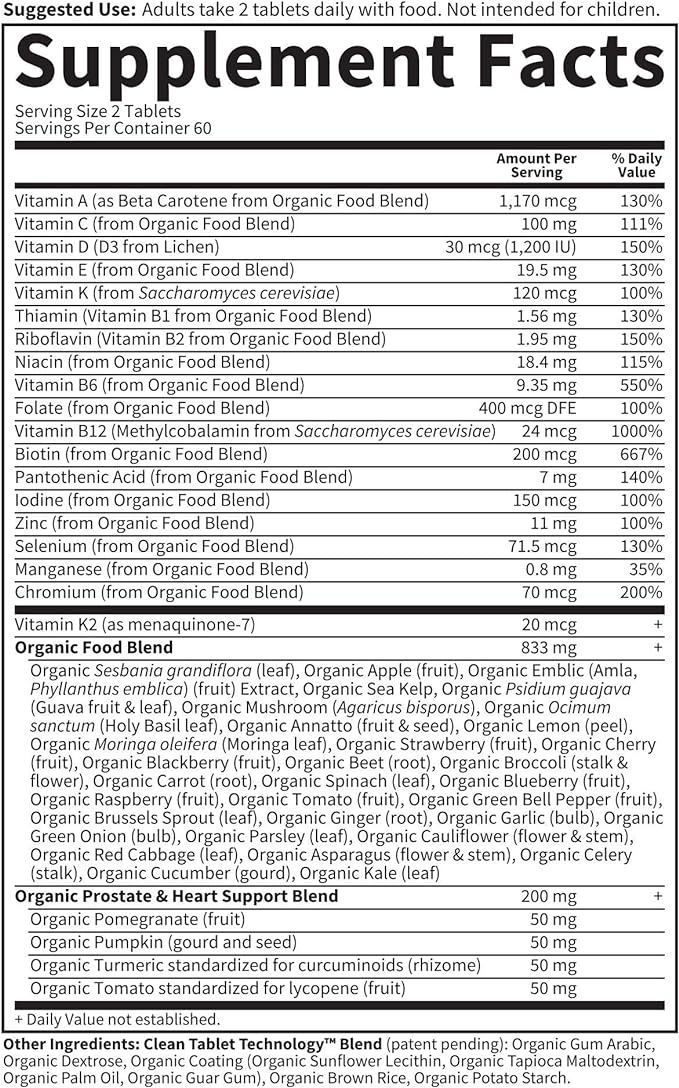 - HEALTH, VITALITY & STAMINA MULTIVITAMIN SUPPLEMENT: Our Vegan multivitamin for men over 40 promotes health and well-being, including prostate, vision and heart support―made from over 30 nutritious and Organic fruits, vegetables & herbs