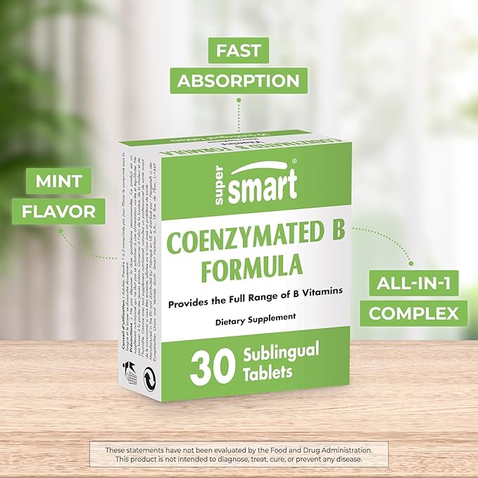 Supersmart - Coenzymated B Formula - Contains All The B Group Vitamins - Five Times More Active | Non-GMO & Gluten Free - 30 Tablets
