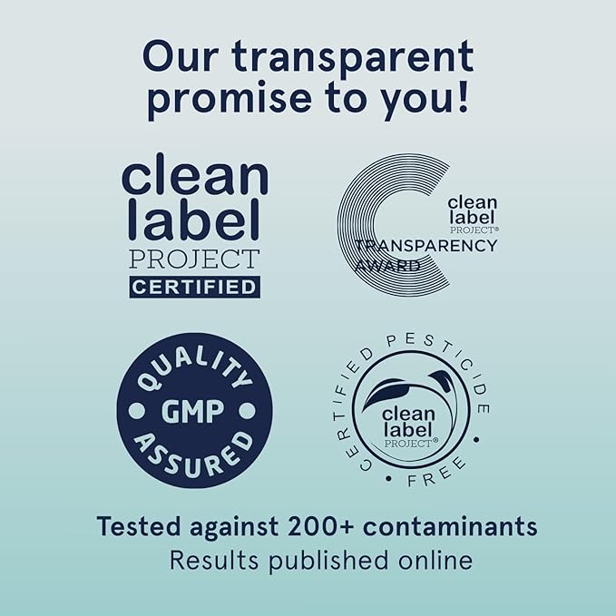 - FULL TRANSPARENCY: Every batch of every product tested for purity and potency by Clean Label Project. They use independent laboratories and publish the test results for everyone to see.