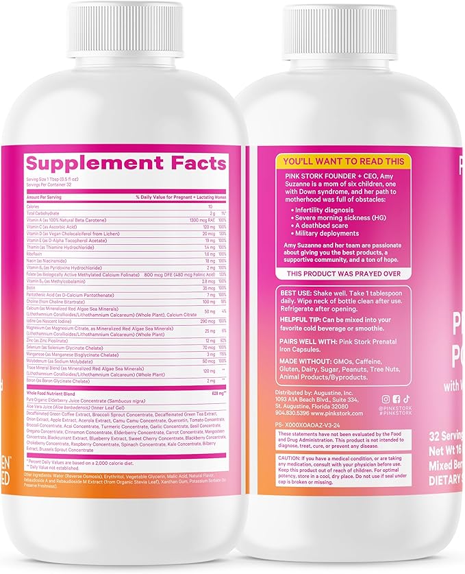 Pink Stork Liquid Prenatal Vitamins for Women - Berry Flavor - Organic Food Blend - for Fertility, Pregnancy, Postpartum- Morning Sickness Support - Breastfeeding and Lactation - 32 Servings