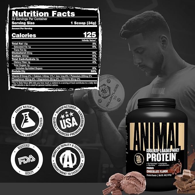 Animal Whey Isolate Protein Powder - Loaded for Pre & Post Workout Muscle Builder and Recovery with Digestive Enzymes for Men & Women - 25g Protein, Great Taste, Low Sugar - Chocolate 4 lbs