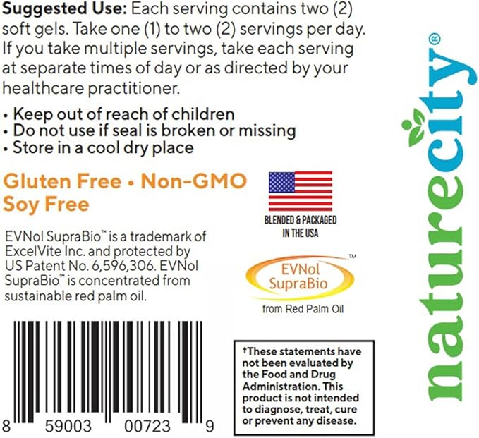 - NATURE’S “ALL-IN-ONE” SOURCE – TrueE is made with EVnol SupraBio, which comes from Non-GMO, sustainable red palm oil. Few plants in nature offer the rich amounts of both alpha-tocopherol and all 4 tocotrienols (alpha, beta, delta and gamma) found in red palm oil.