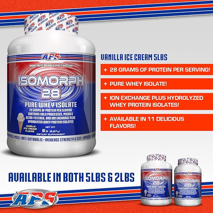 APS Nutrition Isomorph 28 Protein Powder | Pure Whey Isolate | Cold Pressed, Ultra- Filtered, & Ion Exchange Isolates | 28g Protein | 5 Pound (Vanilla Ice Cream)