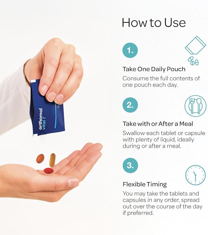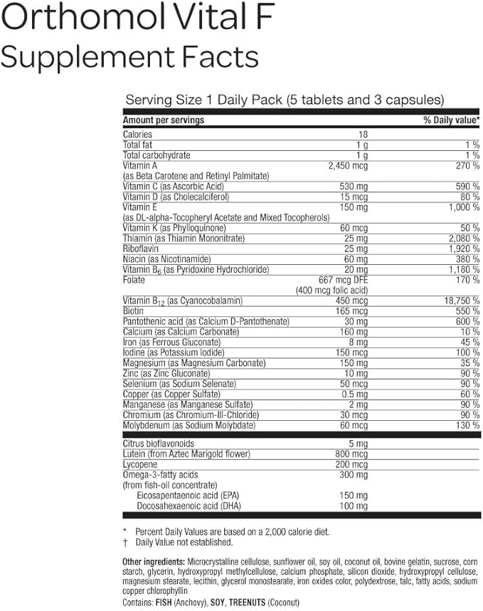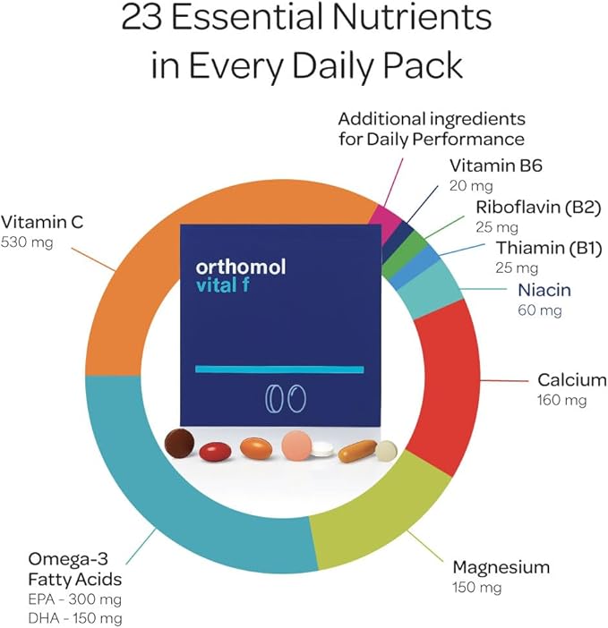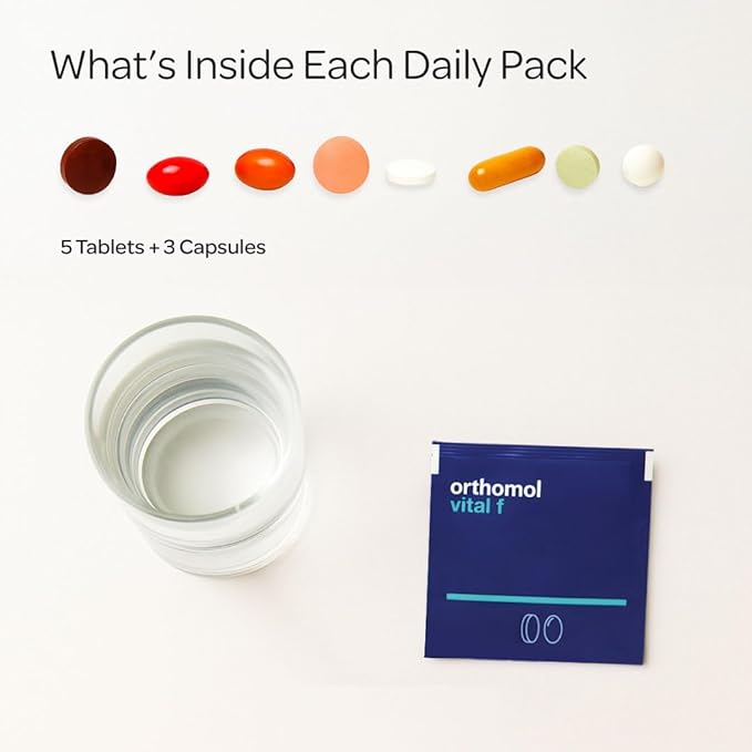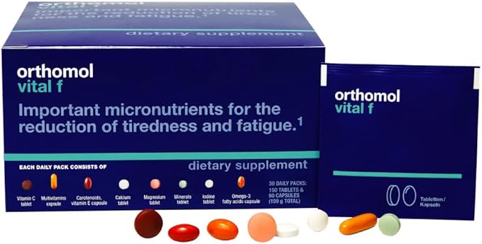 Orthomol Vital F Women's Multivitamin Tablets – 30-Day Supply for Enhanced Vitality, Energy, and Reduced Fatigue with Vitamins A, B, C, D, E, K, Calcium, Iodine & Omega-3