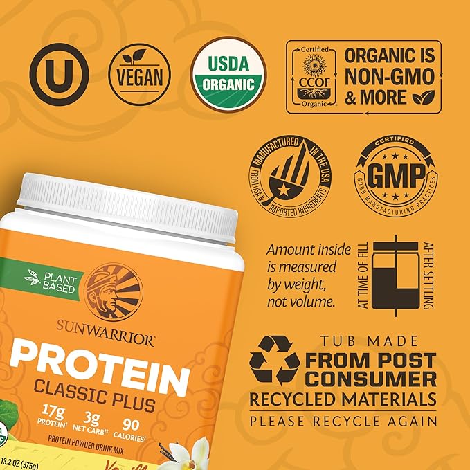 Vegan Organic Protein Powder Plant-Based | 5 Superfood Quinoa Chia Seed Soy Free Dairy Free Gluten Free Synthetic Free Non-GMO | Vanilla 15 Servings | Classic Plus by Sunwarrior