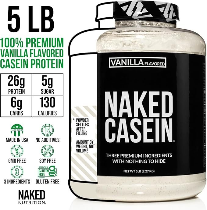 NAKED Casein - Vanilla Micellar Casein Protein - 5 Pound Bulk, GMO-Free, Gluten-Free, Soy-Free, Preservative-Free - Stimulate Muscle Growth - Enhance Recovery - 61 Servings