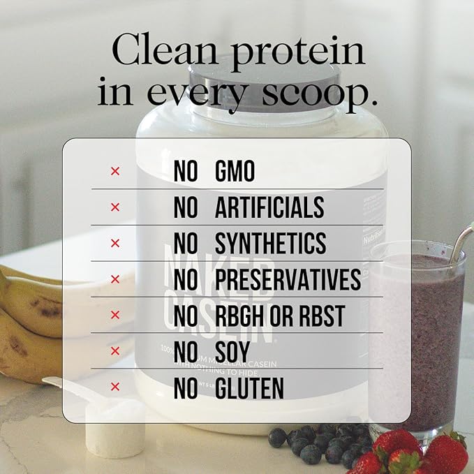 - ONLY THREE INGREDIENTS: 100% Micellar Casein Protein, Vanilla, and Organic Coconut Sugar. Less Naked Vanilla Casein contains no artificial sweeteners or colors and is GMO-Free, Growth Hormone Free, Soy Free and Gluten-Free.