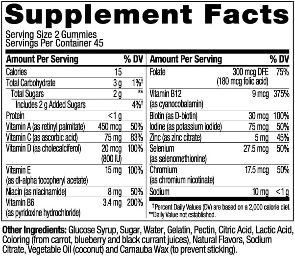 - DELIGHTFULLY TASTY: These men's multivitamins come in Blackberry Blitz flavor with other natural flavors with no synthetic colors or flavors and gluten-free. 90 gummies per bottle (45 day supply)