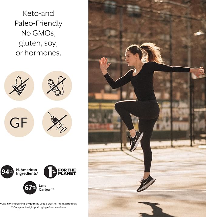 - Seriously Clean: Collagen Peptides are keto-friendly. All Promix products are free of gluten, soy, GMOs, hormones, antibiotics, refined sugar, artificial sweeteners, xanthan gum, fillers, and bleach. 94% of ingredients sourced from North America. Partner of 1% for the Planet. Produced in facilities using GMP (Good Manufacturing Practice) standards.