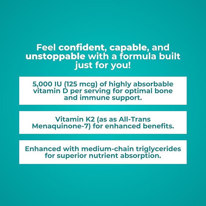 - Highly Bioavailable Vitamin D with K - Upgrade your vitamin D supplements with an innovative softgel with unique ingredients to improve absorption. This D3 K2 formula includes a powerful 2000mcg of vitamin K2 as MK4.