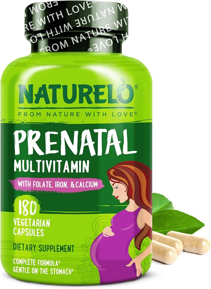NATURELO Prenatal Multivitamin with Gentle Chelated Iron, Methyl Folate, Plant Calcium & Choline - Vegan, Vegetarian - Non-GMO - Gluten Free - 180 Capsules - 2 Month Supply