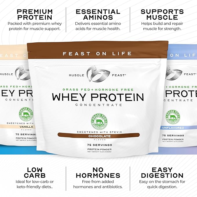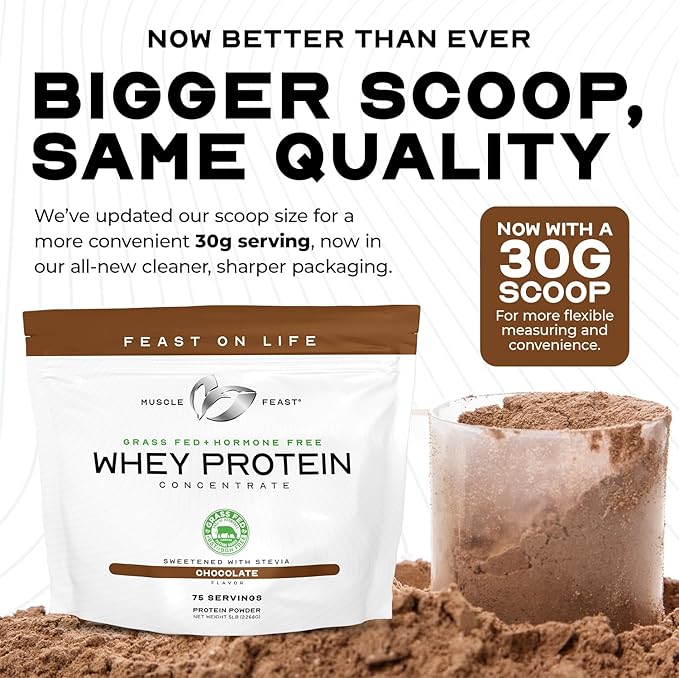 Muscle Feast Grass-Fed Whey Protein Concentrate Powder, All Natural, Hormone Free Pasture Raised Whey Protein Powder for Women & Men, Clean, Non-GMO & Gluten Free Whey Concentrate - Chocolate, 2lb