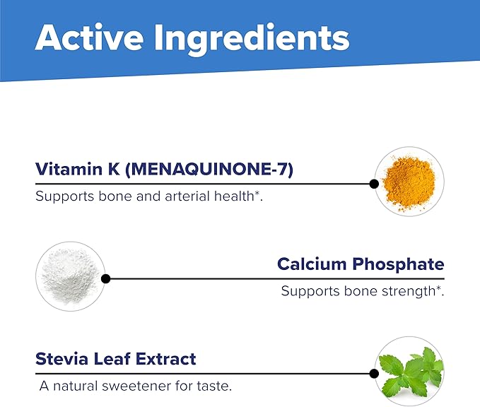 - Primary Supplement Type : Lactose, Vitamin K-2 (as Menaquinone-7) (MK-7), Stevia and Gum Arabic