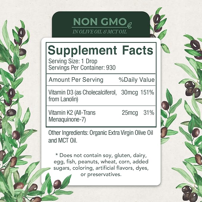 - Non-gmo and sustainably sourced – with zero fillers! With a base of organic extra virgin olive oil and organic MCT oil(100% coconut), our vitamin D drops contain no unnecessary binders, flow agents or preservatives. We third-third party test all of our formulas to ensure there are toxins or heavy metals in our products. Sourced, formulated, and made in the USA.