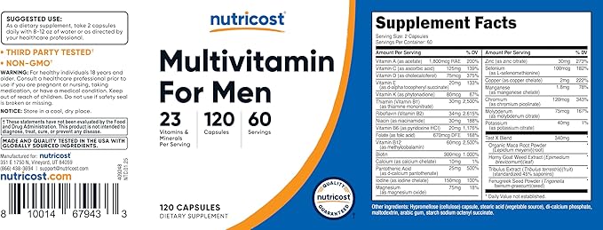 Nutricost Multivitamin for Men 120 Capsules - Vitamins and Minerals for The Healthy Man