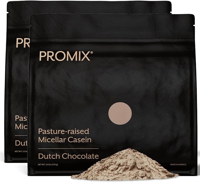 - Slow and Sustained Recovery: Promix Casein Protein Powder is a cold-processed and acid-free bioactive native casein made from milk of grass-fed cows. This lightly sweetened powder contains highly branched alpha/beta/kappa-proteins for a sustained release of amino acids for bedtime use, as well as sunflower lecithin for improved absorption and blending. Chocolate flavor. 58 servings per container, 2 scoops per serving.